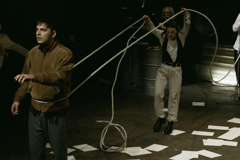 Μια παράσταση εκρηκτική και καθηλωτική, με ερμηνευτές που πάλλονται από ενέργεια ασταμάτητα και κινούνται ορμητικά αδιάκοπα. Μια παράσταση, που φαινομενικά έχει ως κύριο θέμα τον Θάνατο, μα δεν γίνεται ποτέ πένθιμη, ούτε προκαλεί την απόγνωση, γιατί οι επιθανάτιοι σπαραγμοί του Παλιού, αποτελούν ταυτόχρονα, την έναρξη της επώδυνης γέννησης του νέου. Του νέου που δεν θα θυμίζει σε τίποτα το παλιό, […Το όνομα της χώρας άλλαξε. Το νέο δεν θύμιζε σε τίποτα το παλιό...].