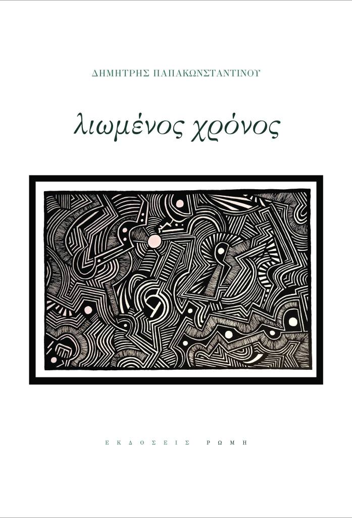 Χαράσσεται και διαποτίζεται το μαύρο με άσπρες τεθλασμένες και παράλληλες γραμμές συνυπάρχοντας αρμονικά η αρχέγονη αντίθεση της ζωής και του θανάτου, του φωτός και της σκιάς, ενώ φωτεινοί κύκλοι διαχέονται του ζωγραφικού έργου τού ποιητή Διονύση Στεργιούλα, που κοσμεί το εξώφυλλο και εναρμονίζεται πλήρως με το περιεχόμενο της ποιητικής συλλογής τού Δημήτρη Παπακωνσταντίνου, αποδίδοντας αφαιρετικά και συμβολικά τη βαθύτερη έννοια του τίτλου «Λιωμένος χρόνος», καθώς ως κίνηση ακαθόριστη ο χρόνος ρέει ανάμεσα σε αντιθέσεις πολυδαίδαλες, διαποτίζοντας τη μνήμη, συνθέτοντας την ολότητα της ζωής, διαφωτίζοντας ποιητικά την παραδοξότητα της ανθρώπινης ύπαρξης, που πασχίζει να ισορροπήσει ανάμεσα σε αντιφάσεις, διαψεύσεις, ανατροπές, προσδοκίες, ελπίδες, βεβαιότητες.